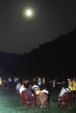 又是一夜君須記,今宵南山更無(wú)眠……昨晚,由市園林局主辦的“采月南山”——中秋賞月晚會(huì),在一段富有詩(shī)情畫意的歡迎辭中拉開(kāi)了帷幕。 農(nóng)歷八月十六,中秋賞月好時(shí)節(jié)。昨晚,明亮皎潔的月光下,如毯的草坪上,支支搖曳的燭光點(diǎn)綴著南山的夜景。幾十張古典雅致的方桌椅,坐著來(lái)自社會(huì)各界的“見(jiàn)義勇為”代表、“大愛(ài)之星”代表、書畫文藝界精英、文明志愿者、風(fēng)景園林建設(shè)者、網(wǎng)民代表等近200人。大家相聚南山,聆聽(tīng)山水的呼吸,放飛輕松的思緒,品茶、聽(tīng)樂(lè)、寫詩(shī)、作畫,共享花好月圓的美好時(shí)刻。 當(dāng)晚的南山賞月晚會(huì)沒(méi)有太多刺眼的燈光,也沒(méi)有喧囂的歌舞表演,取而代之的是古琴、簫、揚(yáng)琴、琵琶等民樂(lè)演奏。淡雅而纏綿的簫聲從遠(yuǎn)處隱隱傳來(lái),溪邊涼亭內(nèi)身著古裝的文人雅士表演著圍棋對(duì)弈、書畫創(chuàng)作、詩(shī)詞朗誦等傳統(tǒng)的文化藝術(shù),營(yíng)造出了溫馨、高雅,又富有望月抒懷情調(diào)的氛圍。 “哇!感覺(jué)自己到了人間仙境!”獲得省見(jiàn)義勇為稱號(hào)的夏國(guó)萍欣賞著眼前的景色,有些出乎意料。她說(shuō),沒(méi)想到南山有這樣的美景,而這種賞月的場(chǎng)景也只有在古裝劇中才能看到。夏國(guó)萍每年的中秋節(jié)都是與家人一起吃頓團(tuán)圓飯,參加那么優(yōu)雅的集體賞月活動(dòng)還是第一次,她希望以后多舉辦這樣的活動(dòng),讓更多的人感受中國(guó)的文化,陶冶情操,提高自身的文化內(nèi)涵。 |